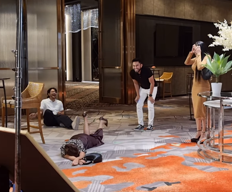 Menerusi video tersebut, ketika berlakon satu babak, Sakinah yang sedang berjalan, tiba-tiba kakinya tergelincir hingga membuatkannya terjatuh. Melihat apa yang terjadi kepada Sakinah, Shukri terus berdekah ketawa kerana Sakinah sudah meniarap di atas lantai.