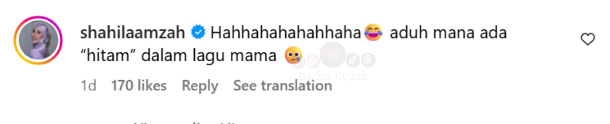 ” Aduh, mana ada ‘hitam’ dalam lagu Mama, haha.. ” – Shila Amzah
