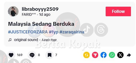 Setelah hampir sebulan pemergian Zara Qairina, perasaan rindu yang teramat pastinya amat dirasai oleh ahli keluarga Zara termasuk saudaranya. Menerusi satu akaun Tiktok bernama Farid, perkongsian sebuah kisah telah mengundang rasa sebak ramai orang.