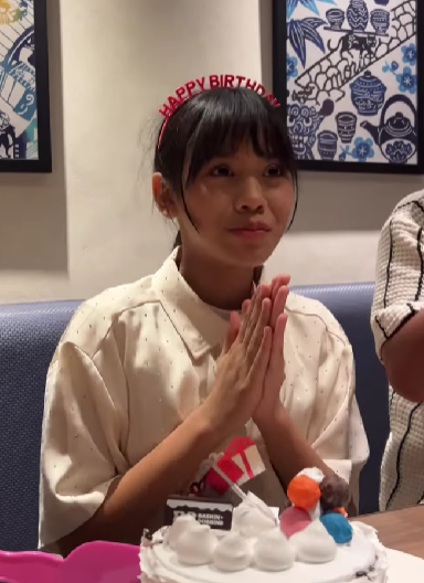 Kelihatan beberapa pekerja restoran tersebut datang membawa sebiji kek hari lahir sambil menyanyikan lagu ‘Happy Birthday’ kepada Thalita. Turut kelihatan adik Thalita, Matin juga begitu teruja menyambut hari lahir kakaknya.