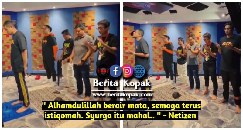 Nabil menjadi imam, manakala yang lain sebagai makmum. Indah melihat pemandangan ini, perkara yang wajib didahulukan baru lah berkat pekerjaan yang ingin dilaksanakan. Dalam mengejar waktu untuk bersiaran secara langsung bersama pendengar, tetap dicelah masa untuk berjemaah bersama-sama.