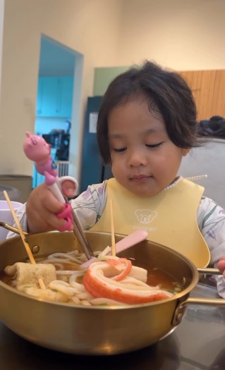 Alahai comel sungguh melihat gelagat Rina makan. Memang bikin terliur melihat menu makanan Rina, tambahan pula menu Rina memang menu yang jarang-jarang kita lihat kerana merupakan masakan Korea. Semoga Rina membesar menjadi anak yang baik.
