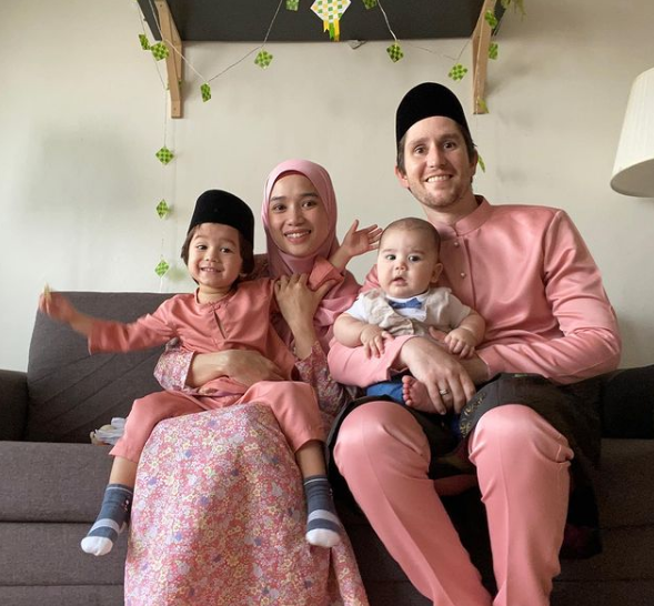 ” Ibu, dok dengar pun .. anak omputih kecek ganu.. Ahaha.. Kiut ngat berehh bohhh .. Beautiful family.. selamat hari ray mat dan .. “