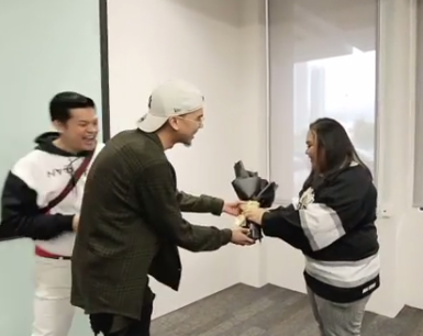 Kehadiran MK adalah untuk memberikan ucapan tahniah kepada Cik B atas kemunculan lagu terbaru Cik B iaitu ‘Tol0nglah’ . Kelihatan MK membuat kej0tan dengan membawa sejambak bunga khas buat Cik B sebagai tanda ucapan tahniah.