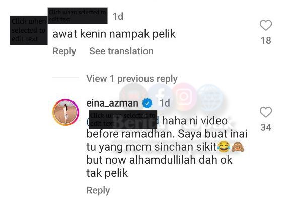 Ini respon Eina terhadap komen-komen netizen :