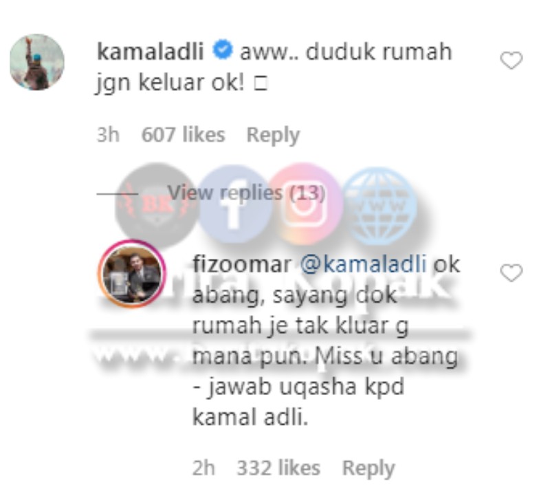 Posting Uqasha itu mendapat komen daripada Kamal Adli yang kedengaran sangat caring dan sweet . Namun respon balas Fizo Omar ke atas komen Kamal Adli itu buat netizen tergelak. Amboi Fizo bab menyak4t Kamal memang tak lepas peluang betul.