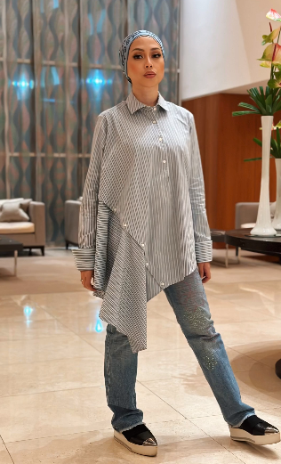 Pemakaian Puteri Ameerah yang santai hanya berseluar slack dan baju yang berwarna hitan membuatkan Puteri Ameerah kelihatan cantik. Kata Azrinaz, fizikal dan gaya puterinya ini saling tak tumpah seperti dirinya ketika zaman remaja suatu masa dahulu.