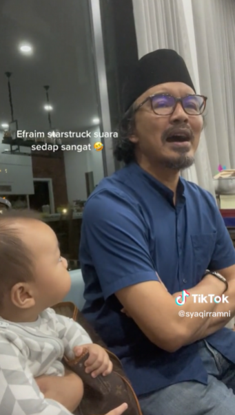 ” Terpegun betul baby dengar Anuar Zain menyanyi. Kalau akak jadi awak adik baby, akak pun termenung gitu haha. sedap sangat.. “