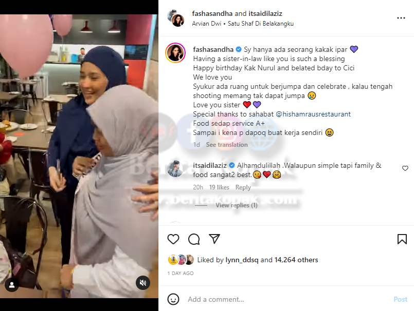 Perkongsian video ini telah menerima lebih 13 ribu tanda suka daripada warganet sejak ia dimuatnaik. Seronok melihat kemesraan Fasha bersama keluarga mertuanya dan sambutan hari lahir yang nampak meriah.