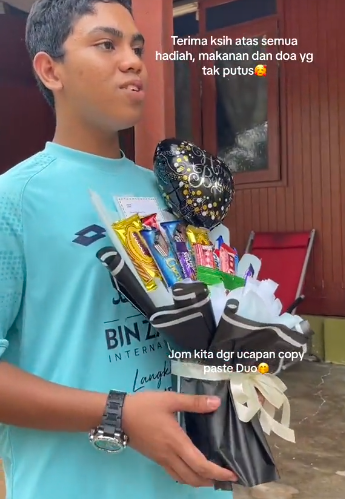 ” Selamat hari Lahir dollah, alhamdulillah nampak dollah berisi syukur .. banyaknya hadiah dia, murah rezeki Duo.. ”