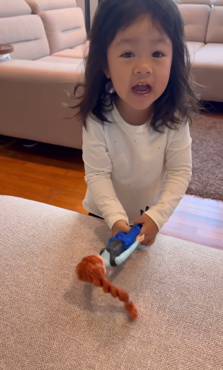Reaksi Rina sangat comel dengan menutupkan mata anak patung tersebut dengan tangannya. Apa yang lebih mencuri perhatian netizen ialah cara percakapan Rina yang sangat seiras dengan gaya percakapan ibunya, Maryam You Narae yang berasal dari Korea.