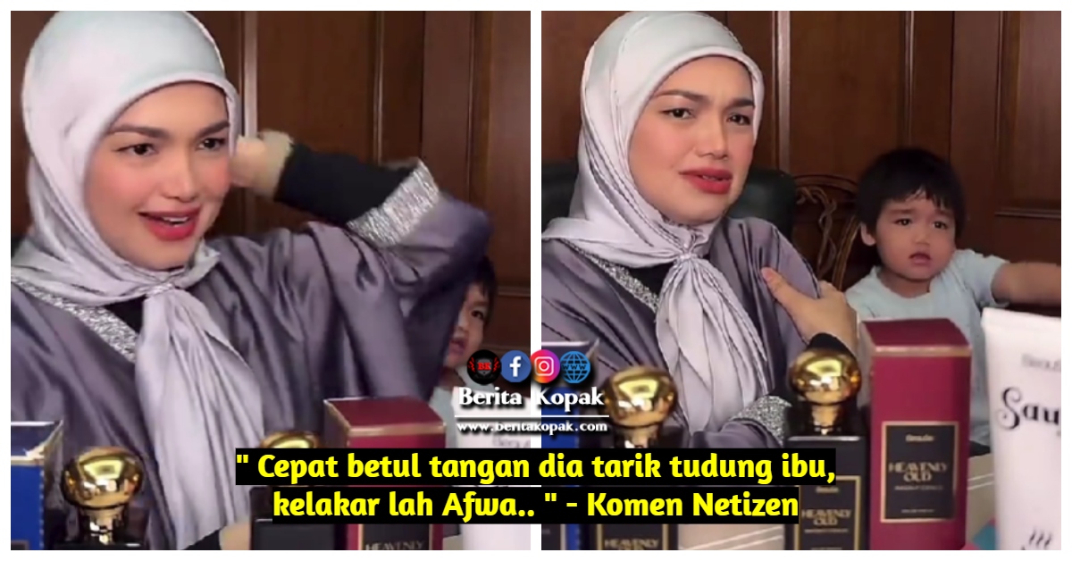 ” Cepat betul tangan dia tarik tudung ibu, kelakar lah Afwa.. ” – Komen Netizen