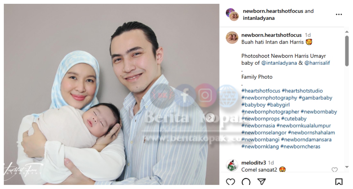 Meninjau entry di akaun Instagram Newborn Heartshotfocus, telah dikongsikan beberapa keping gambar yang memaparkan photoshoot baby Harris Umayr. Intan dan Harris juga sama seperti ibu bapa lain yang gemar mengabadikan gambar kenangan ketika anak masih bayi.