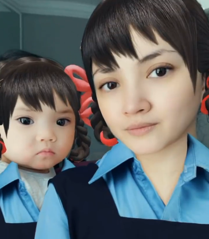 Fatima yang sedang duduk di atas kerusi bayinya ini nampak comel sekali. Dengan tangannya diletakkan di mulut, Fatima nampak seperti sedang termenung. Seketika kemudian, terdengar suara Fazura bertanyakan Fatima ‘nenek di mana’ .