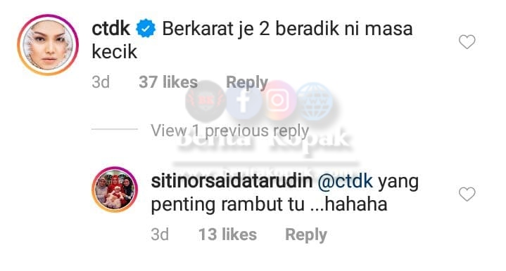 Dato’ Seri Siti turut meningg4lkan komen terhadap posting kakaknya itu :