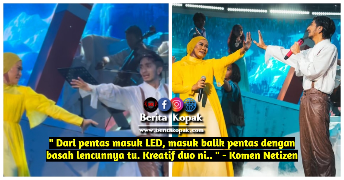 ” Dari pentas masuk LED, masuk balik pentas dengan basah lencunnya tu. Kreatif duo ni.. ” – Komen Netizen