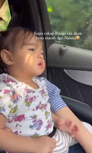 Meninjau akaun Instagram Sheila Rusly, telah dikongsikan satu video yang memaparkan Sheila membebel kepada Bunga ketika berada di dalam kereta. Panjang juga bebelan Nanna kali ini dan banyak teguran yang diberikan kepada cucu kesayangannya ini.