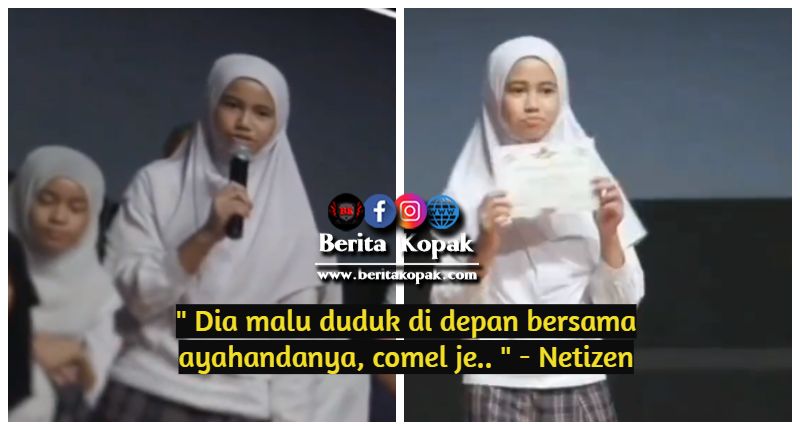 ” Dia malu duduk di depan bersama ayahandanya, comel je.. ” – Netizen