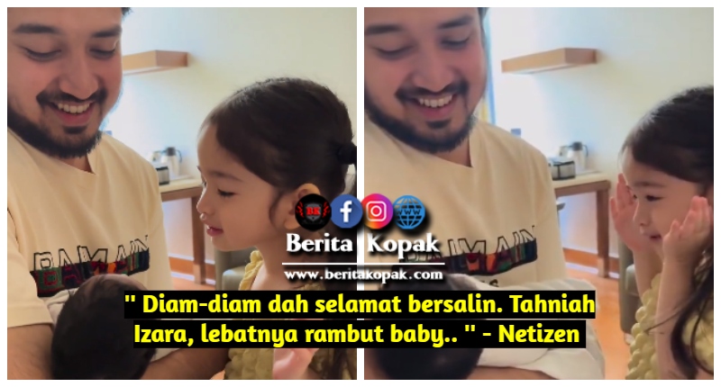 ” Diam-diam dah selamat bersalin. Tahniah Izara, lebatnya rambut baby.. ” – Netizen