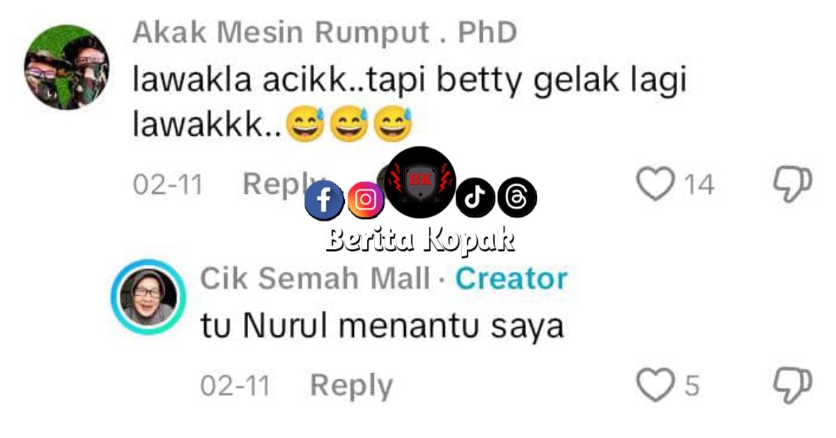 Ada yang ingat Cik Semah sedang bersembang dengan Betty, namun rupa-rupanya dengan menantu Cik Semah bernama Nurul.
