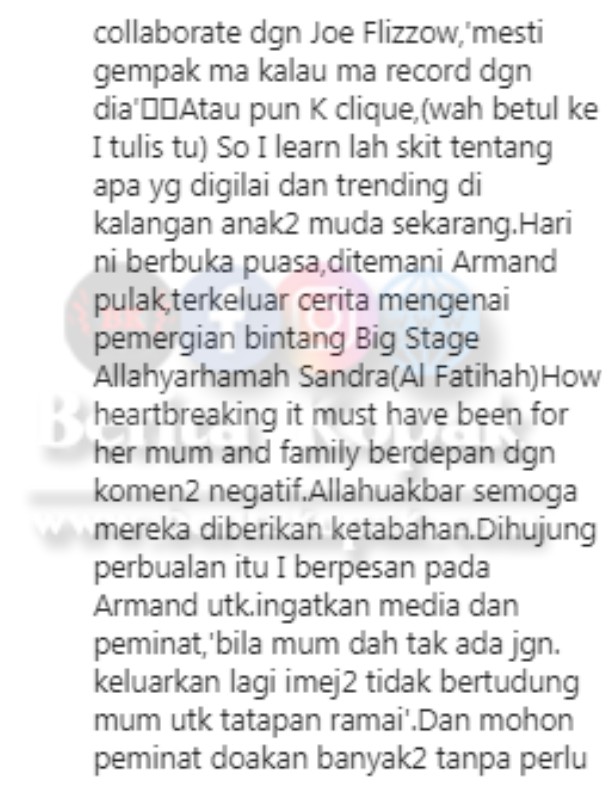 Aishah turut men1nggalkan pesanan kepada anaknya ini andainya dia dijemput Ilahi suatu hari nanti supaya tidak mengingatkan kepada semua pihak tidak memutarkan sebarang imejnya yang tidak bertudung. Panjang lebar juga coretan Aishah kali ini namun ada iktibar yang dapat diambil daripada penulisannya ini.