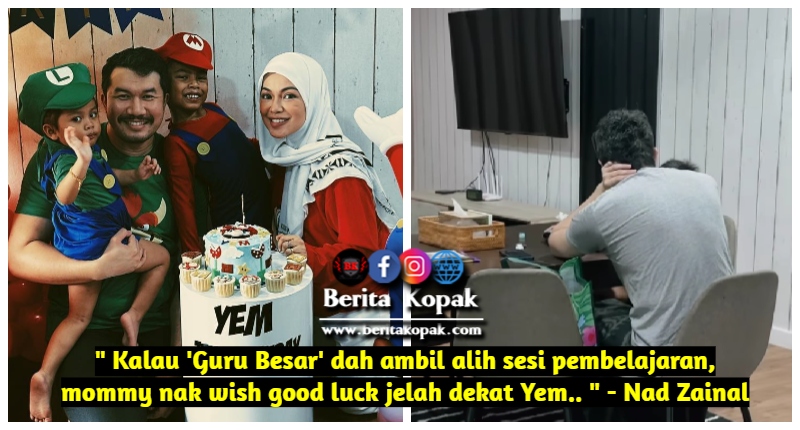 ” Kalau ‘Guru Besar’ dah ambil alih sesi pembelajaran, mommy nak wish good luck jelah dekat Yem.. ” – Nad Zainal