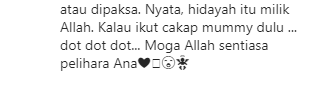 Alhamdulillah.. Beruntung Norzie dan Aidid dapat anak seperti ini.Semoga Ana terus istiqomah untuk menutup aurat. Apa-apa pun, kami dari Berita Kopak mendoakan semoga keluarga Norzie dan Aidid sentiasa bahagia, dimurahkan rezeki selalu. Amin.