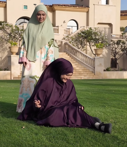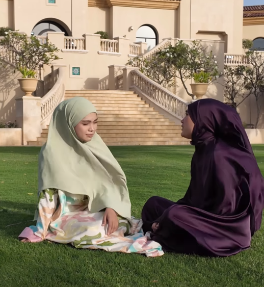 Pada ketika ini mereka berdua sedang menunaikan umrah dan video ini dirakamkan ketika mereka berada di sana. Kedua-dua cukup manis bertudung dan mengenakan jubah. Nampak sangat kedua adik-beradik ini penuh dengan kasih sayang.