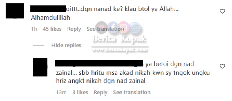 Ada juga komen daripada salah seorang peminat yang mendakwa memang benar Nad dan Ungku Ismail telah berkahwin :