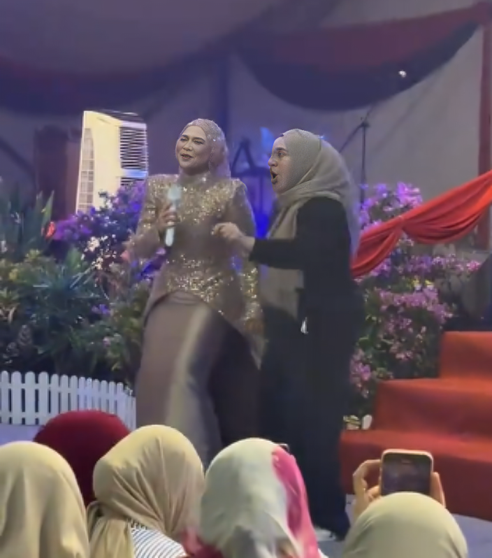 Aina sendiri terhibur dengan gelagat peminatnya ini dan menggenggam tangan wanita tersebut sambil meneruskan nyanyian. Cara Aina melayani peminat itu mendapat pujian warganet. Untung peminat ini dapat peluang keemasan bersama Aina seperti ini.