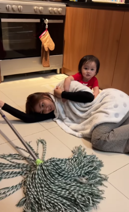 Namun lakonan Fazeera begitu ‘deep‘ kerana semua kerja rumah dilakukannya sambil baring. Antara kerja yang dilakukan adalah mop lantai, mengemas bilik, menjaga anak, melipat baju. Tulis Fizo di ruangan kapsyen mengatakan bukan mudah bergelar suri rumah yang bekerja sepanjang hari dan tiada masa langsung untuk berehat.