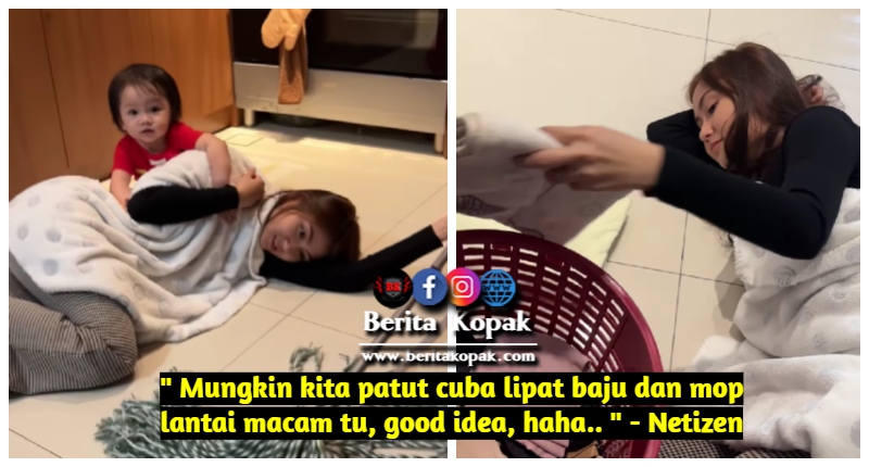 ” Mungkin kita patut cuba lipat baju dan mop lantai macam tu. Good idea, haha.. ” – Netizen