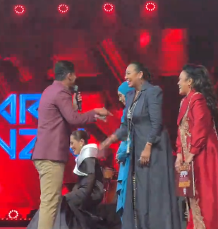 Sheila sudah mula kelihatan tidak keruan dan wajahnya seakan menahan kesakitan ketika berdiri di pentas bersama rakan-rakan yang lain. Kegelisahan Shiela itu disedari oleh Ning Baizura yang berada di tepinya dan host GV, Nabil Ahmad dan Jihan Muse.