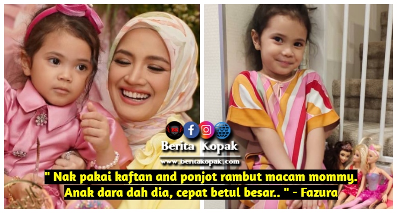 ” Nak pakai kaftan and ponjot rambut macam mommy. Anak dara dah dia, cepat betul besar.. ” – Fazura