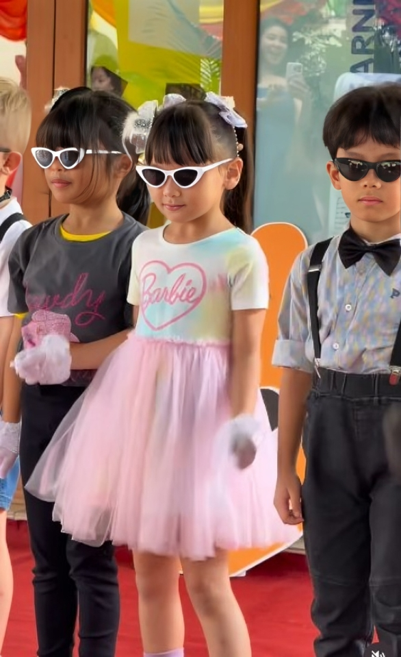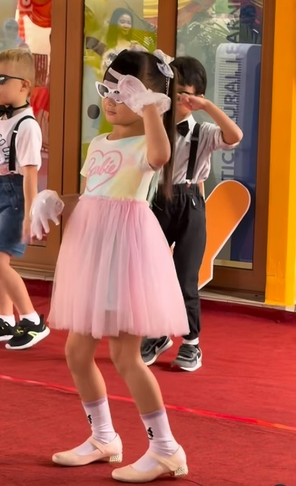Aisha sangat comel dengan memakai gaun berwarna putih dan pink serta memakai kaca mata hitam. Ini bukanlah kali pertama Aisha membuat persembahan di sekolahnya. Sebelum ini juga Fasha ada berkongsi video Aisha menari dan sejak dari kecil lagi Aisha sememangnya pandai menari.