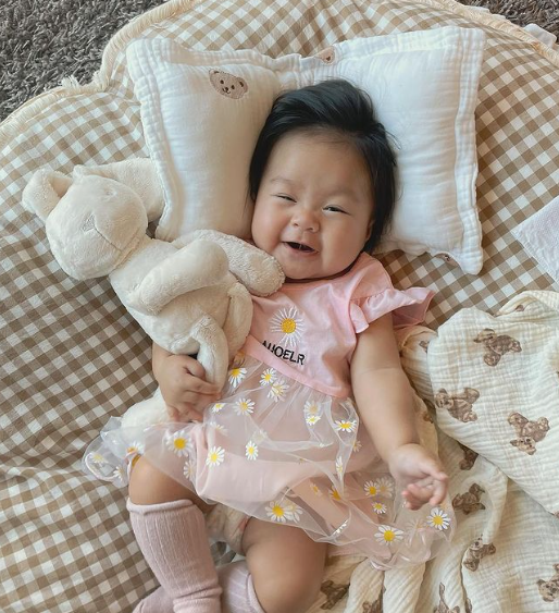 Comel betul tengok Rina menundukkan kepala seperti itu, manalah peminat tak ger4m melihat Rina. Dari kecil sudah faham bahasa Korea, besar nanti tentu pet4h bercakap macam mommy dan daddynya. Apa pun, terus ceria dan stay safe selalu Rina.