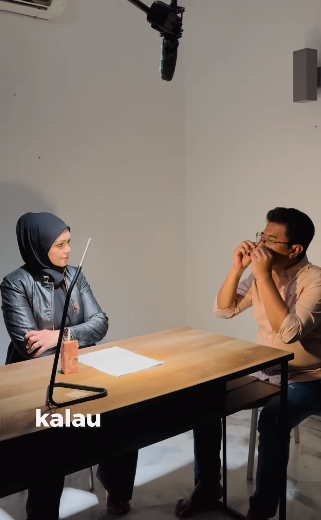 ” Kalau polis ni siasat aku,terus aku nyanyi ting ting tang ting… alahai comelll.. Tak kuat tu ketuk meja nya.. Dia gelak hahaha pun merdu mcm menyanyi.. “
