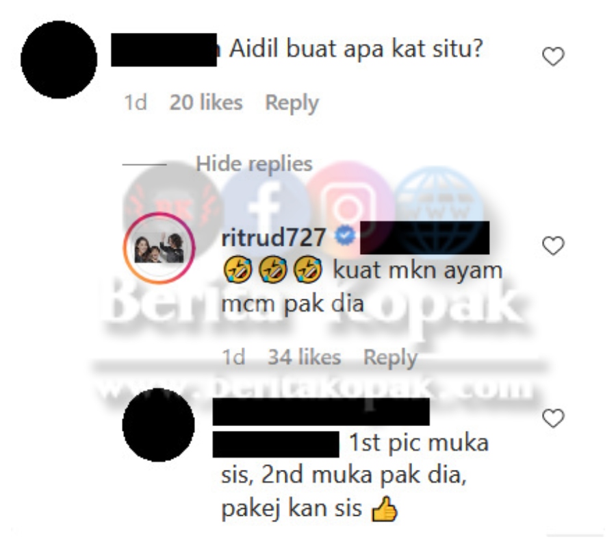 ” Mcm muka pak dia had abg tu kak.. Dari tepi.. Aidil buat apa tu.. Kuat muka pak dia.. Rayyan.. fotostat sungguh muka ayah dia.. ”