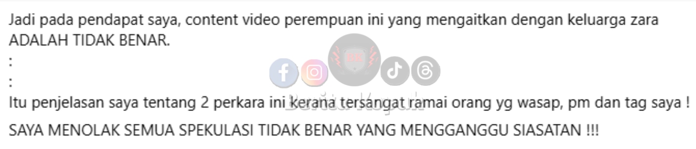 Kata Mona Din, dia berjaya menghubungi pemilik akaun tersebut dan bertanyakan lebih lanjut serta mendapatkan kesahihan tentang kejadian yang diceritakan dalam komen itu. Apa yang peliknya, ibu Zara sendiri tidak mengenali individu ini.