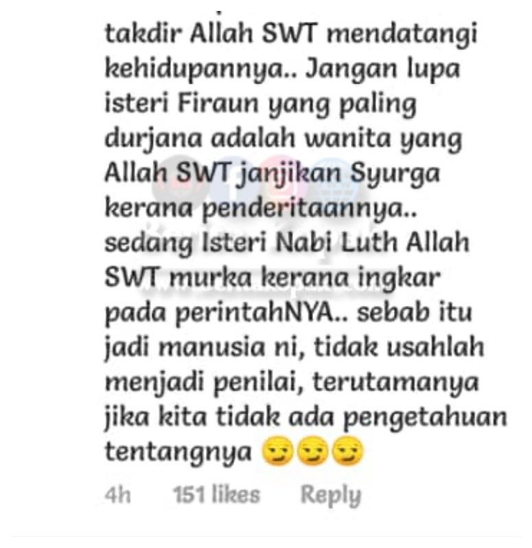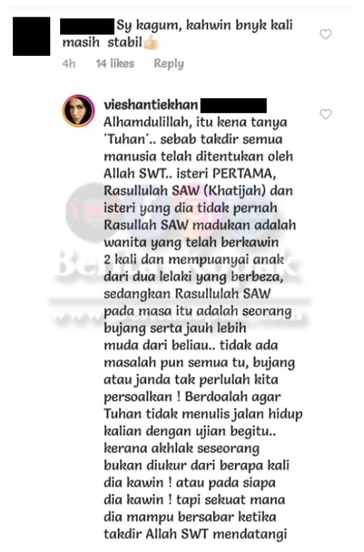 Namun ada tersel1t satu komen yang berbunyi seperti menyind1r kehidupan Datin Vie Shantie dan ini mendapat respon dari Datin Vie Shantie sendiri.