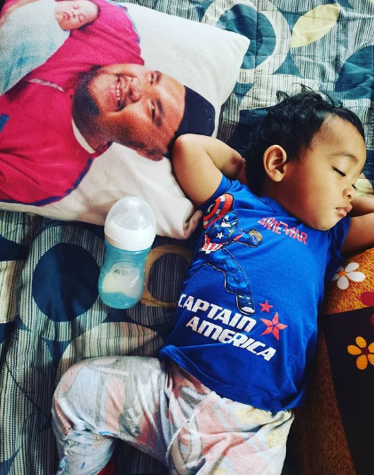 Tentunya anak kecil ini mempunyai rasa rindu pada ayahnya walaupun belum pandai memberitahu. Hanya bantal yang dicetak wajah Abam sahaja selalu menemani Hamzah di samping gambar-gambar dan video kenangan mereka bersama.