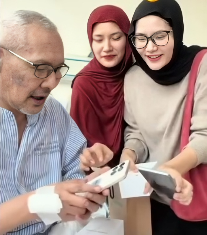 Momen itu menjadi lebih menyentuh hati apabila mereka menghadiahkan sebuah telefon pintar baharu kepada bapa mereka agar dapat menemani Salih sepanjang proses pemulihan, selain memudahkan Salih berkomunikasi bersama keluarga.