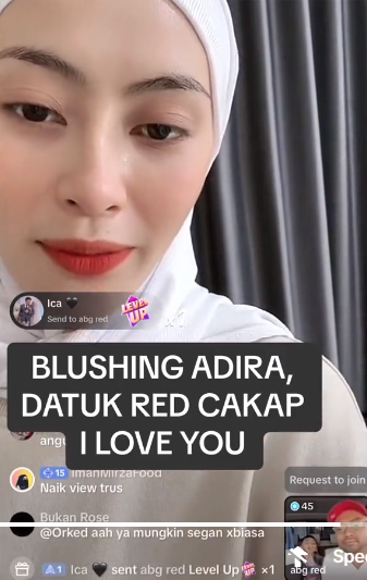 Ketika ingin mengakhiri sesi live mereka, Adira mengucapkan ayat I love you yang ditujukan untuk Ali dan Asan tetapi lain pula jadinya apabila Dato’ Red yang menjawab I love you too. Reaksi spontan Adira mencuit hati warganet melihatnya. Alahai, malu-malu pula Adira.