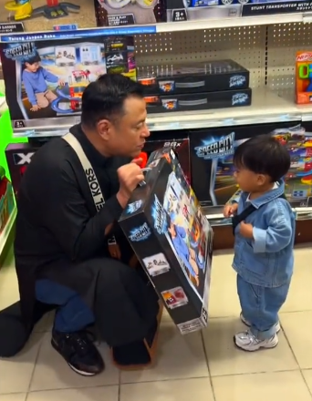 Menerusi entry terbaru Pak Nil di akaun Instagramnya, telah dikongsikan pula kejadian yang terjadi ketika Pak Nil dan Raees singgah ke sebuah kedai toys. Gembira betul Raees melihat banyak mainan yang terdapat di situ. Pak Nil cuba mengambil kesempatan untuk bermesra dengan Raees.