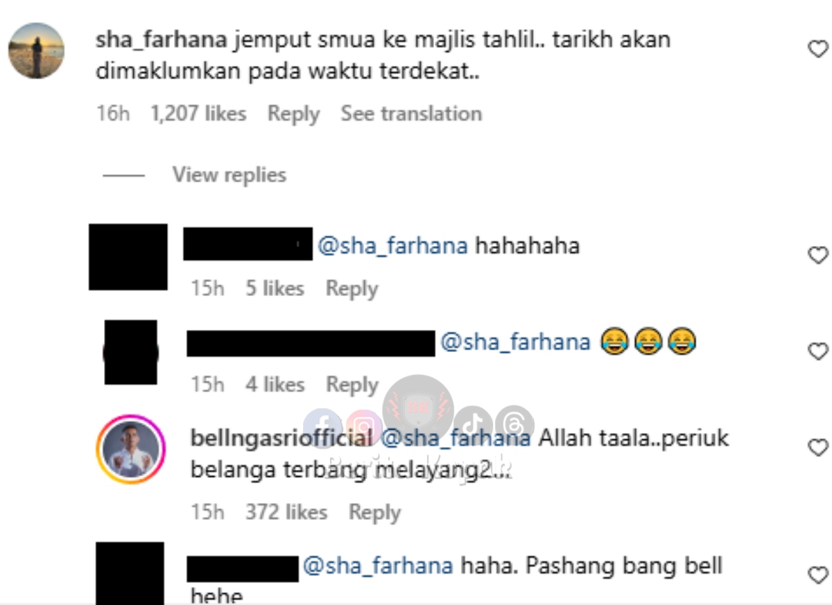 Warganet pula tidak henti-henti menyakat Bell dan ada juga yang sengaja tag akaun Instagram Sha Farhana. Tidak hanya peminat Bell, malah rakan-rakan artis juga seronok mengusik Bell. Bukan main lagi muka gembira Bell dalam gambar itu, tersenyum lebar sampai ke telinga.