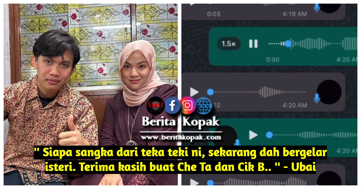 ” Siapa sangka dari teka teki ni, sekarang dah bergelar isteri. Terima kasih buat Che Ta dan Cik B.. ” – Ubai