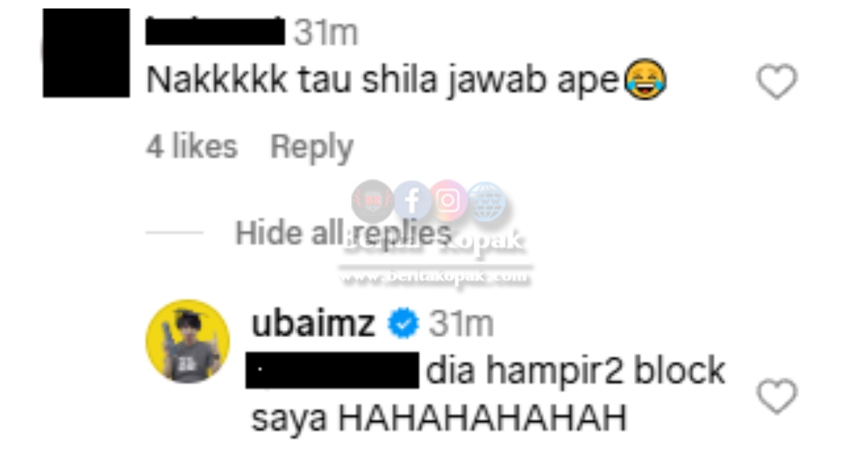 ” Haha bagi penampo sedas please haha.. Adoi patut ler Shila Amzah sangkut, pandai Ubai mengayat hehe.. Dengar ni Rozita Che Wan haha.. ”