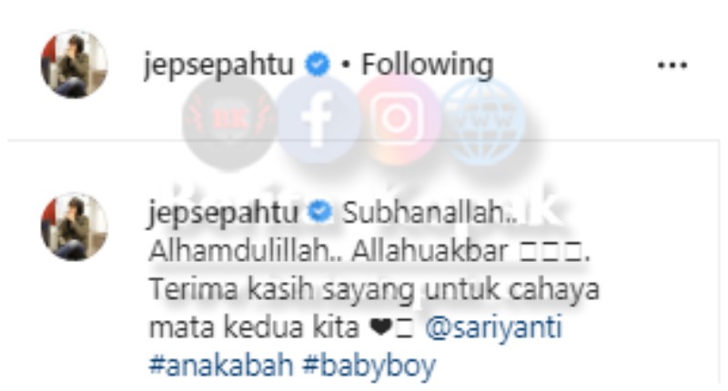 ” Terima kasih sayang untuk cahaya mata kedua kita.. ” – Jep Sepahtu