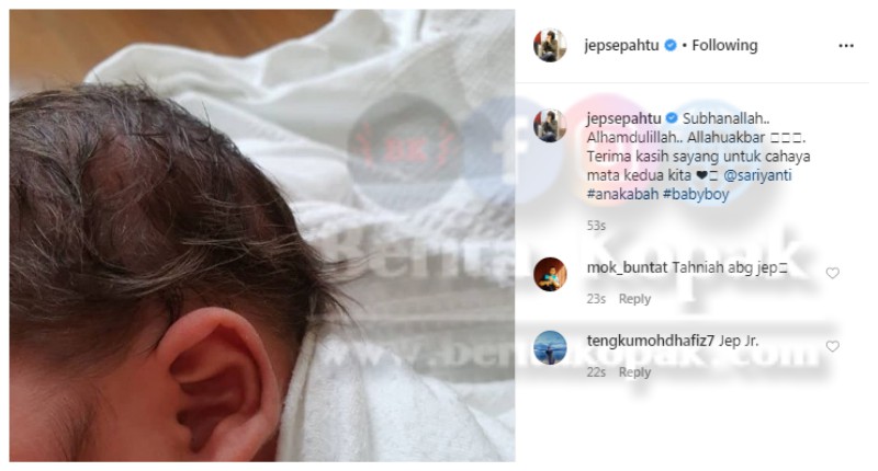 Menerusi akaun Instagram, Jep Sepahtu berkongsikan sekeping gambar bayi keduanya yang hanya ditunjukkan dari pandangan tepi. Mengucapkan kesyukuran dan terima kasih buat isterinya, akhirnya Jep dikurniakan seorang bayi lelaki. Wah seronok lah Dariya dah dapat adik !!