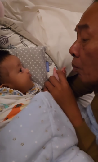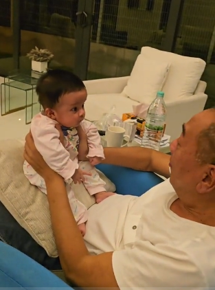 ” Nmpk ceria di wajah tok ram melayan anknya tu, tu mesti taknk kuar rumah tu, nk main dgn baby tu je.. ”
